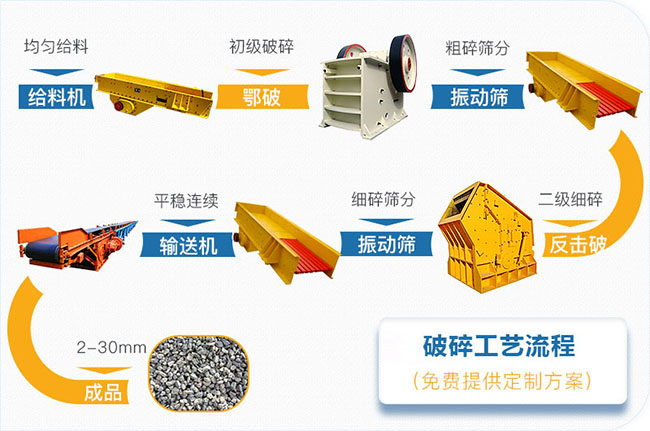 石頭變石子大概需要給料機(jī)、破碎機(jī)、篩分機(jī)、運(yùn)輸系統(tǒng)。